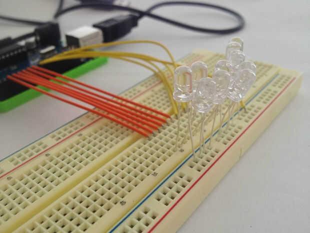 Cuando lo haya hecho salir el tablero y conectar tu arduino con ella como en las fotos. (Clavijas 2-11 y terreno) Luego cargue el circuito real sobre la placa para la prueba real! He probado con único LED.