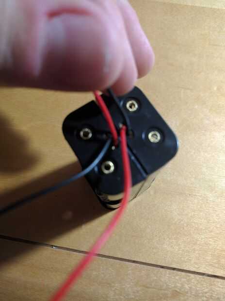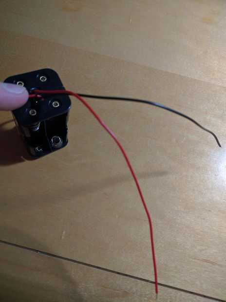 Luego, tome un cable rojo y negro y conéctelos. (Esto puede hacerse girando los juntos y luego cubriendo el alambre expuesto con cinta.
