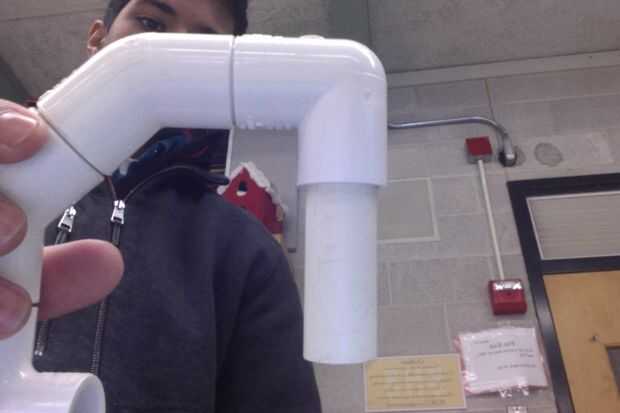 Ahora Conecte el tubo de pvc de 2.5 pulgadas al conector de 90 grados desde el principio.