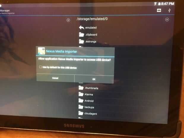 (4) lanzar la app Nexus Media importador (u otra aplicación de visor de manager de archivos soporte de almacenamiento externo USB y NTFS). Seleccione "OK" para permitir la aplicación para dispositivo USB de acceso.