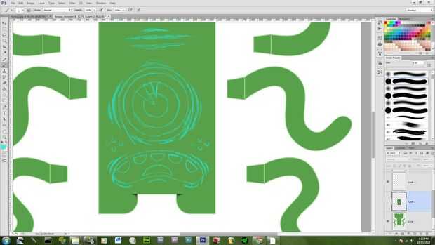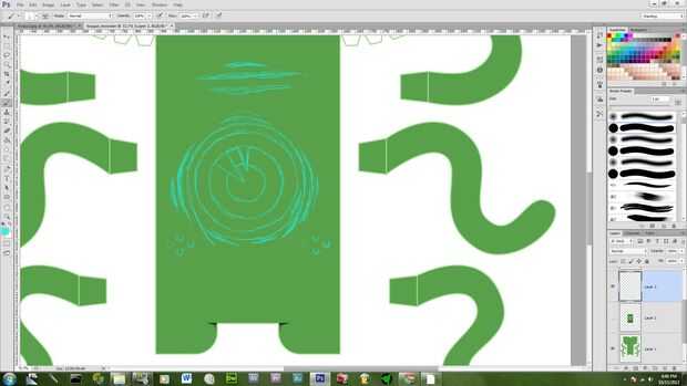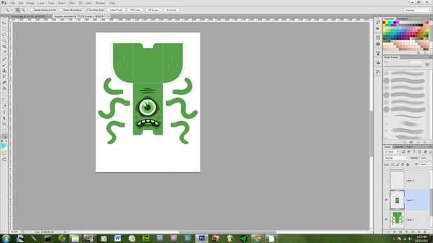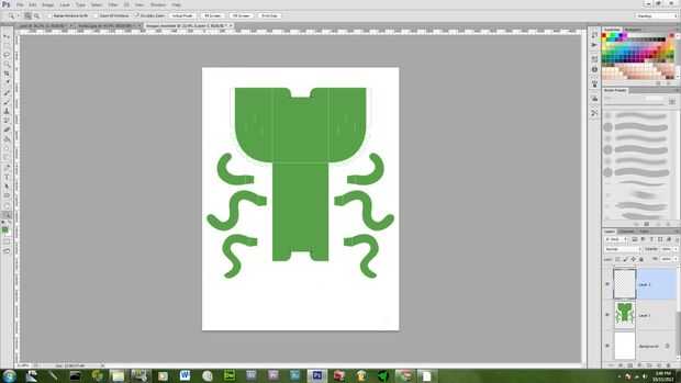 Con la herramienta varita mágica selecciono el interior y usa una verde me ha gustado para llenar con la herramienta Cubo de pintura. Luego crea una nueva capa y comenzó a esbozar los rasgos en la cara con un color cian. Luego, tomo la herramienta pluma para crear el arte de línea y los colores.