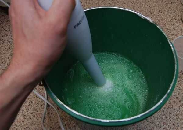 Añadir su elegido colorante, dependiendo en el efecto que desee. Colorante de alimentos dará una baba transparente, las pinturas hará opaca el limo. Recomiendo unos 20g de cartel o pintura en polvo de un color razonable (2%) aunque yo he usado hasta un 5% para algunos usos. Revuelva.