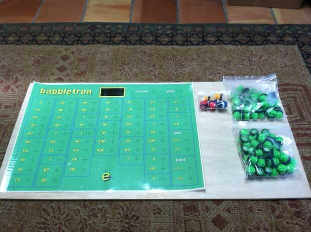 Sparkfun (www.sparkfun.com) Arduino (Lepnardo) microcontoller (Leonardo) botones de arcade, protoshieldEscudo de síntesis (www.ginsingsound.com) el ginseng ginseng onda con IC Babblebot