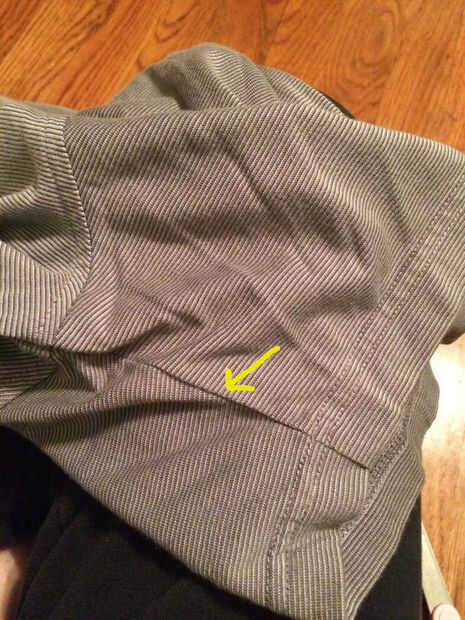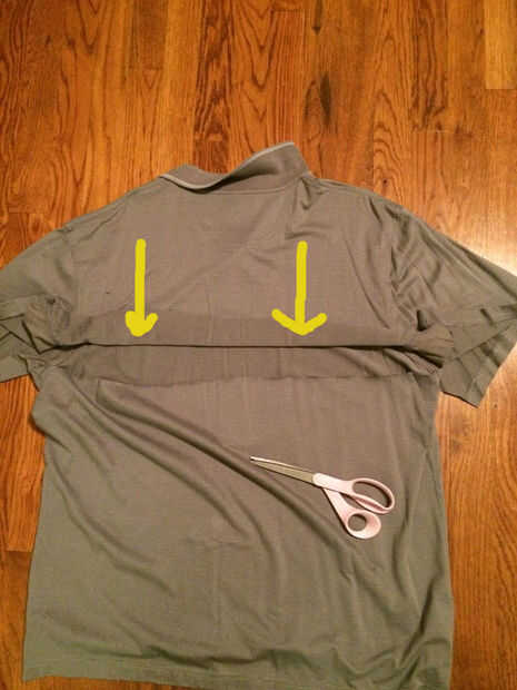 Tome la camisa y cortar la costura de la manga. Ver cuadro con flecha en costura para cortar. Hacer esto en ambas mangas. Ahora tienes una camiseta con las dos mangas que se abren. La vuelta la camiseta y cortar a través de la espalda de la camisa en línea la costura en las mangas. No eliminará cualquier material corte justo en la parte posterior de la camisa.
