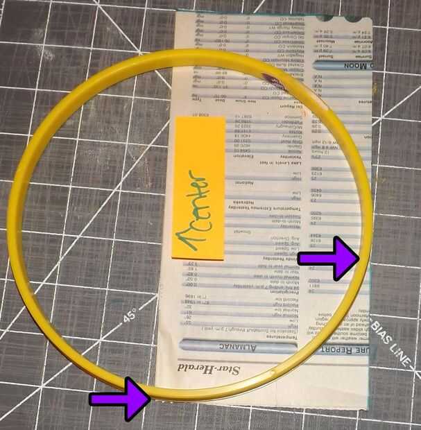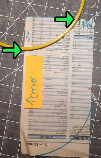El círculo se coloca en la esquina del doblez de centro y luego hacia el borde del lado derecho del rectángulo. Esto variará dependiendo del tamaño del círculo.