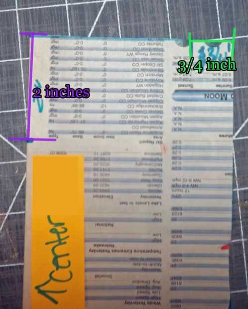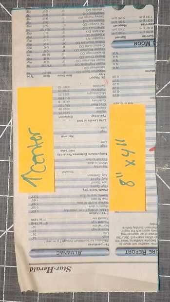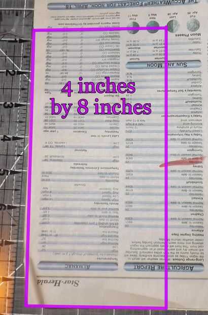 Medir un rectángulo de 4 pulgadas por 8 pulgadas en el pliegue de centro del periódico.