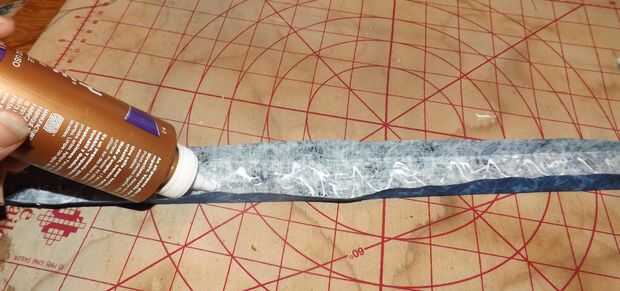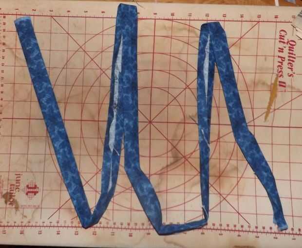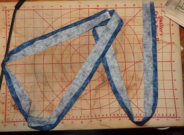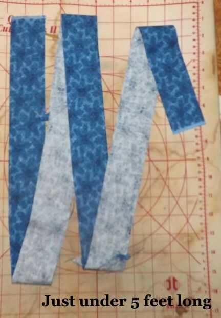 Medir y cortar tiras ancho de dos pulgadas de la tela. Crear lo suficiente para que tenga al menos una tira larga de cuatro pies al final de este paso.