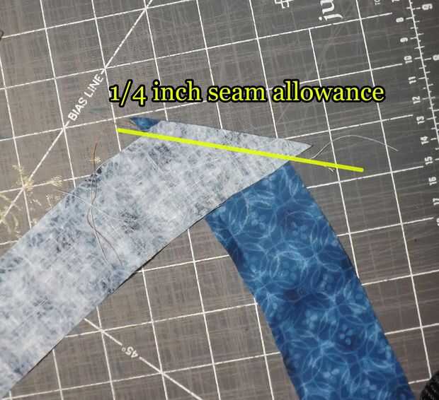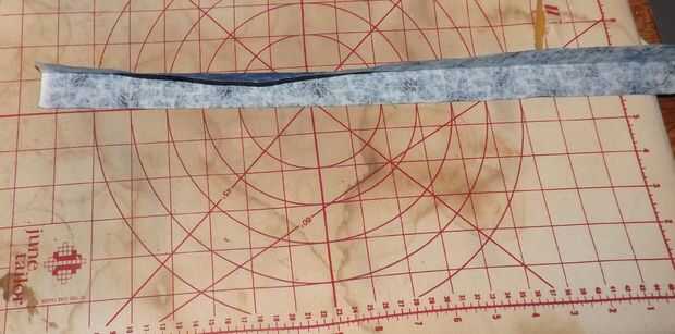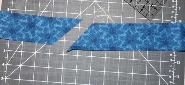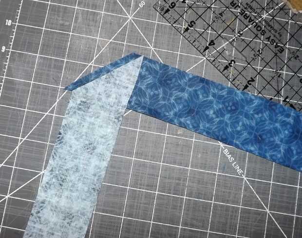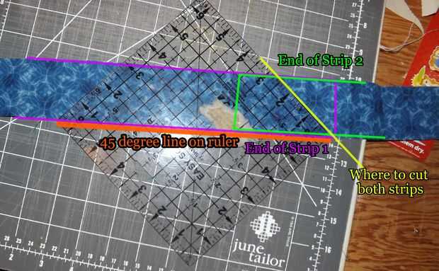 Utilizando la línea de ángulo de 45 grados en su regla de cuadrícula, alinear la parte inferior de la traslapar tiras con esta línea.