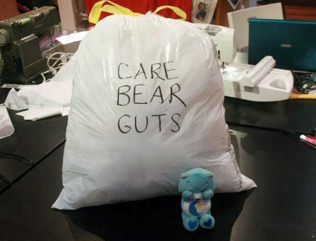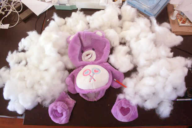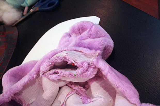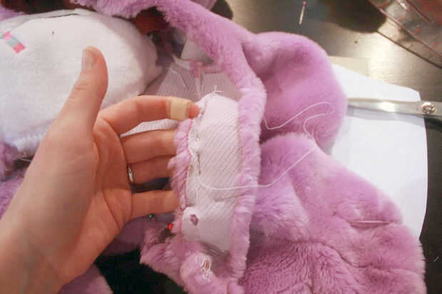 En este punto, le ayudará a abrir el vientre donde pretende poner la cremallera. Apareció la costura desde el mentón del oso hasta su pierna a lo largo de un lado.
