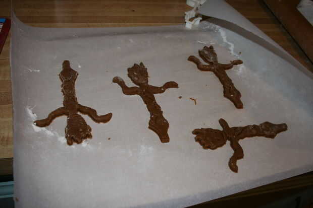 Mientras que el primer lote es hornear rodillo hacia fuera el resto de la masa y cortar formas adicionales de Groot.