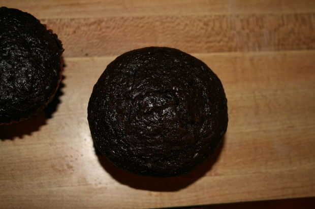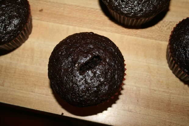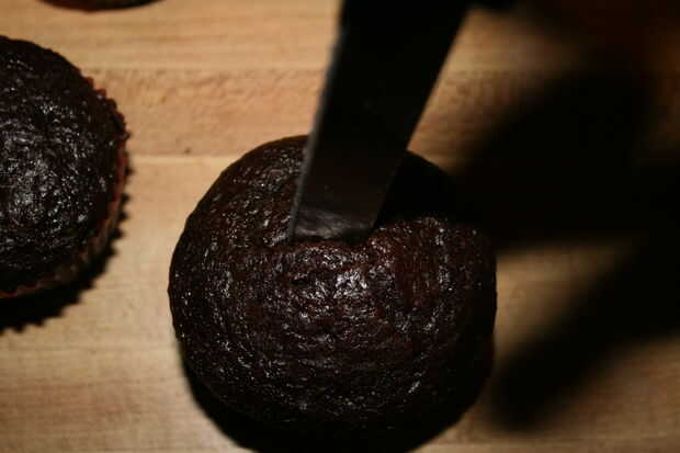 Una vez frío corta una abertura rectangular en la parte superior de la Magdalena apenas más ancha que la parte inferior de las galletas de Groot, pero más delgado que donde el instinto de galletas hacia fuera. No ahuecar la Magdalena como la fricción entre la tarta y la galleta sostenga la cookie en su lugar en el paso siguiente.