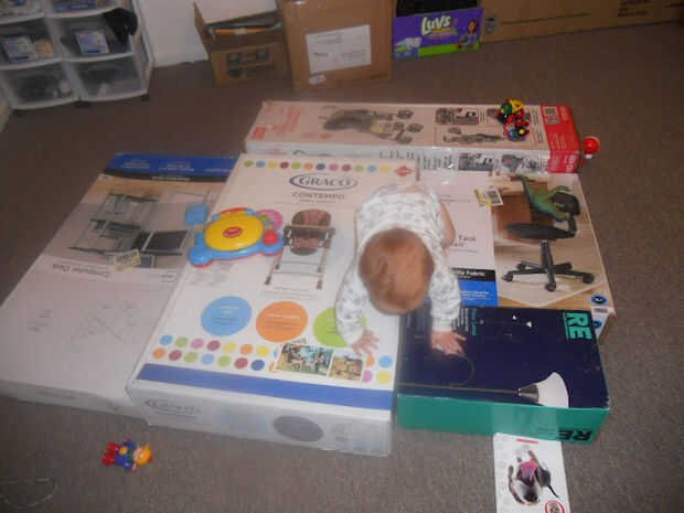 nuestro niño parece disfrutar siendo empujado en una caja. (Mi esposa dice debo apuntar hacia fuera el pañal caja era Mark.)Usé retazos tenía alrededor de la casa y hacer esto. (Colecciono trozos de plástico para otros proyectos, así que tengo un mon