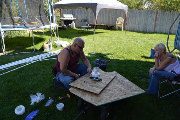 nuestro niño parece disfrutar siendo empujado en una caja. (Mi esposa dice debo apuntar hacia fuera el pañal caja era Mark.)Usé retazos tenía alrededor de la casa y hacer esto. (Colecciono trozos de plástico para otros proyectos, así que tengo un mon
