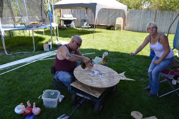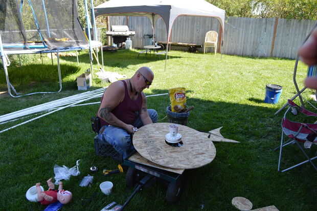 nuestro niño parece disfrutar siendo empujado en una caja. (Mi esposa dice debo apuntar hacia fuera el pañal caja era Mark.)Usé retazos tenía alrededor de la casa y hacer esto. (Colecciono trozos de plástico para otros proyectos, así que tengo un mon