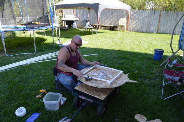 nuestro niño parece disfrutar siendo empujado en una caja. (Mi esposa dice debo apuntar hacia fuera el pañal caja era Mark.)Usé retazos tenía alrededor de la casa y hacer esto. (Colecciono trozos de plástico para otros proyectos, así que tengo un mon