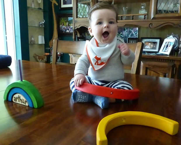 Este es un juguete de bebé verdaderamente satisfactorio pueden ser masticada, ceremonia y lo jingles.Las piezas son tan simples. El montaje es un poco menos simple, pero con un poco de lo trasteo que vale la pena el esfuerzo.Me di cuenta cómo volver