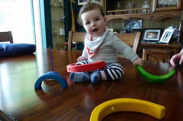 Este es un juguete de bebé verdaderamente satisfactorio pueden ser masticada, ceremonia y lo jingles.Las piezas son tan simples. El montaje es un poco menos simple, pero con un poco de lo trasteo que vale la pena el esfuerzo.Me di cuenta cómo volver
