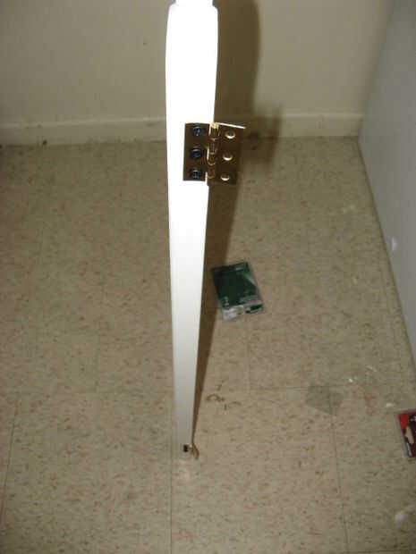 Taladre los agujeros para que cierto no agrietar la madera. Coloque los tornillos de las bisagras y cerradura (Asegúrese de que obtener el tamaño correcto. No lo hice)