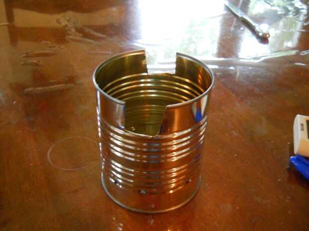 A continuación, corte las aberturas en el lado abierto de la lata. Esto también ayuda a la ventilación.