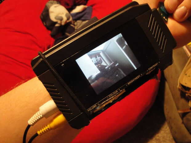 encontrar la necesidad de ser capaz de ver directamente detrás de mí, así como en el frente con hacia fuera tiene que utilizar tiempo para girar alrededor de algo con frecuencia (algo el Bat-traje antiguo podría haber usado antes de la actualización de cuello), que quería crear algo que me dejaba ver detrás de mí, así como muy lejos con poco esfuerzo si estoy en un apretado situación. Dos cámaras están conectadas a un monitor en mi muñeca. Es la primera cámara en la espalda y el otro se colocará en una pistola de paintball para que pueda refugiarse y continuar disparando. La segunda cámara también podría ser una cámara inalámbrica que está en un árbol en algún lugar para obtener una vista aérea.