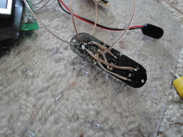 Normalmente usted usaría un interruptor DPDT pero uno tenía era demasiado grande para el proyecto así que hice el equivalente de uno de cada dos interruptores SPDT.