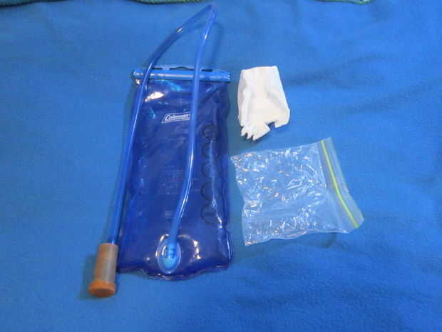Agua: 2 L de agua vejiga (llena) y un montón de filtros de café para pre filtración.