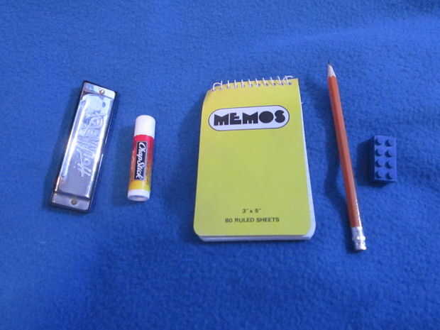 Toques personales: Borrador de armónica, chap de labio, Bloc de notas, lápiz y lego:)