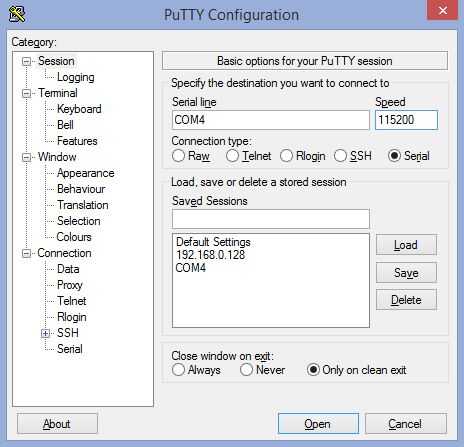 En masilla, conecte a la Edison seleccionando el botón "Serial", escribir en el puerto COM en el formato de "COM #" donde # es el número encontrado en el administrador de dispositivos, junto con "115200" en el cuadro de (velocidad). Haga clic en "abrir" y verá una pantalla como la tercera imagen de arriba. Pulse < Enter > y escriba raíz en el.