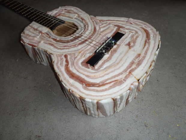 A menudo me encuentro queriendo expresar mi apasionado amor por bacon. Creo que por simplemente, comerla, me tomo más de la relación entonces es de tocino. Y esto, queridos amantes del tocino, no va a hacer. La introducción de la guitarra de tocino. En este video le he dado instrucciones sobre cómo hacer tu propia guitarra de tocino, seguido de consejos útiles para escribir una canción de amor para bacon. Por último, hay un pequeño video de mi canción titulada, "Tocino amor Blues", mi guitarra de tocino. Ahora vayan y multiplicar las melodías de tocino.