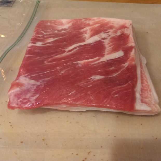 Cuando están las 4 horas, retirar el tocino y dejar enfriar. Una vez enfriada puede cortarlo y utilizarlo enseguida. Frito mi primera hornada y toda la familia realmente lo disfruté.