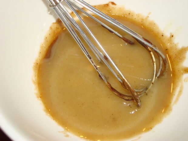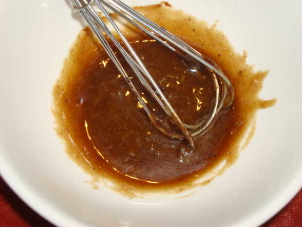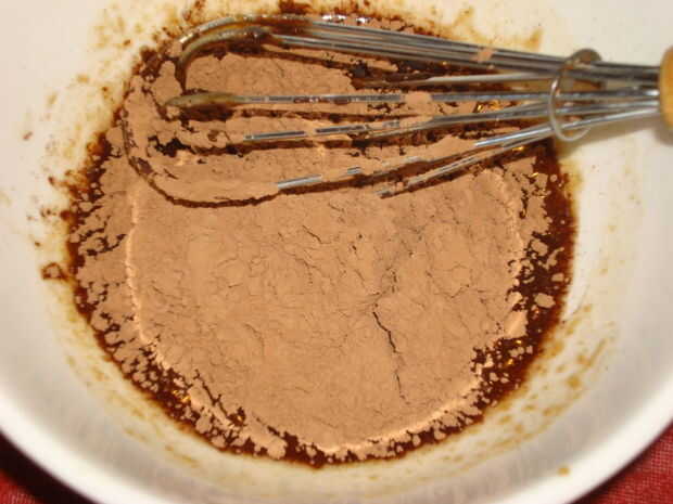 • Agregar la mezcla de azúcar y el cacao al tocino y la mezcla de caramelo y mezcla bien. Ver nota antes de continuar.