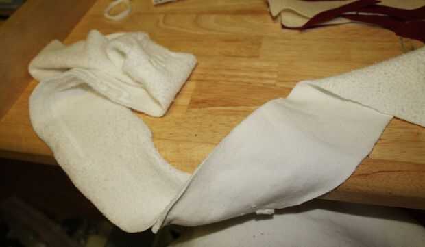 5) coser los rectángulos en los extremos que son 3" forma de la guarnición de la bufanda, debe tener un largo delgada bufanda-como la estructura en el extremo