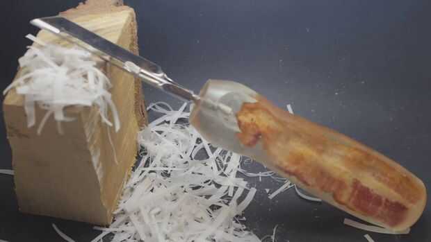 El punto de este proyecto fue menos el resultado final y más sobre el proceso de fundición. Yo quería probar y conservar un pedazo de tocino cocido en un bloque de resina.