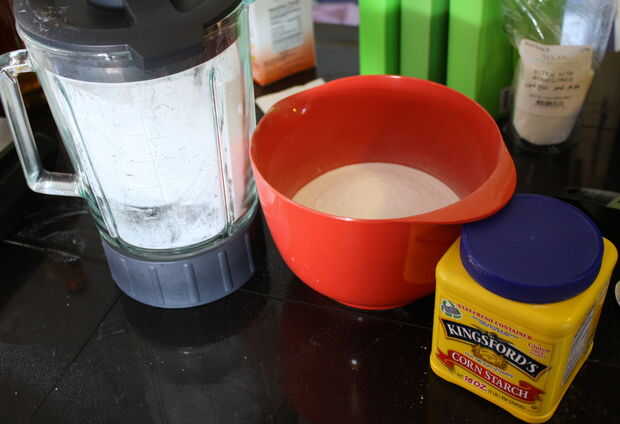 Combinar polvo de dextrosa de 310 gramos (aproximadamente 2 tazas) con 40 gramos de fécula de maíz (aproximadamente 5 cucharaditas) y triturar en lo alto un par de minutos. Esto mezclar los dos ingredientes bien y dar la dextrosa un molido más fino incluso si es necesario.