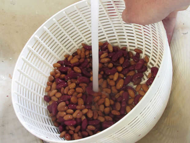 1. en primer lugar, escurra y enjuague bien sus frijoles