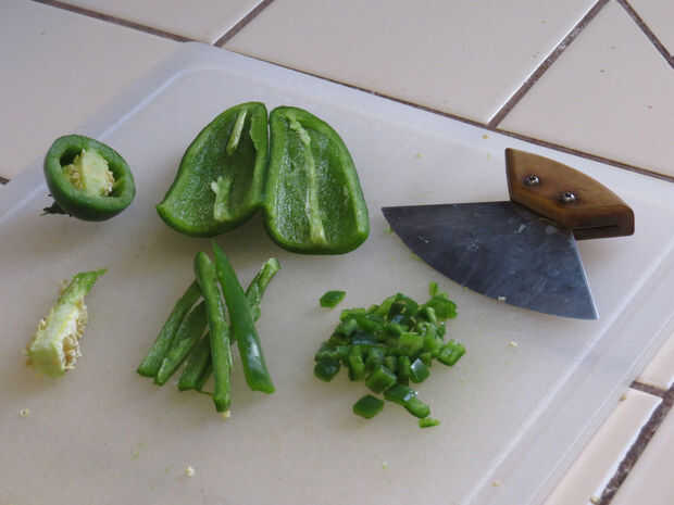 3. a continuación, quitar los tallos, los corazones y las semillas de tus pimientos. Si desea añadir más picante a su Chile, usted puede utilizar algunas de las semillas, pero no son realmente necesarios.