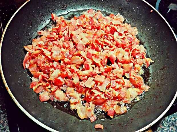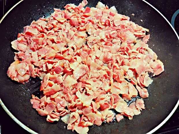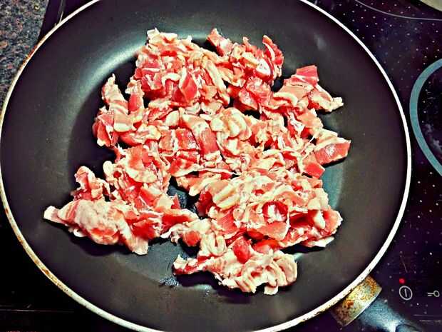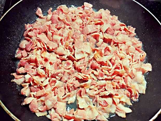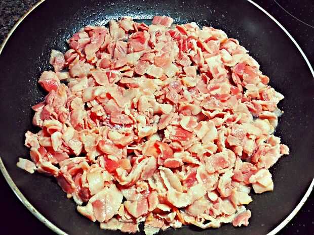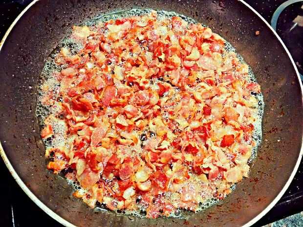 Bacon, queso y espagueti comida (3 / 10 paso)