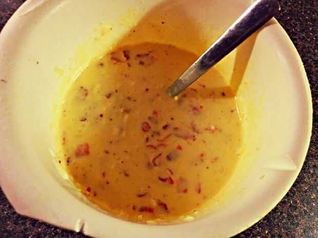 Bacon, queso y espagueti comida (6 / 10 paso)