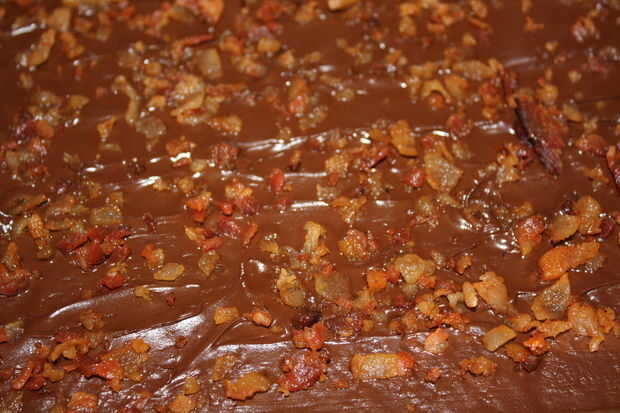 Es caramelo crujiente grasa cubierta de chocolate y cubierto con tocino!
