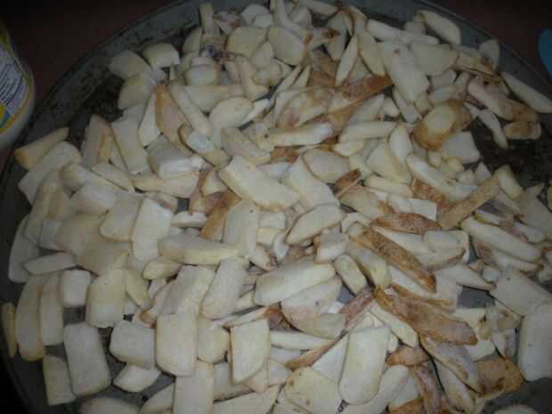 extendió sus bistec papas fritas en una placa para horno o pizzera, cocinarlas un poco más caliente que el paquete requiere un poco más, acerca de 400f y 45minutes, desea que las papas a una corteza exterior agradable para sostener contra la "preparación"