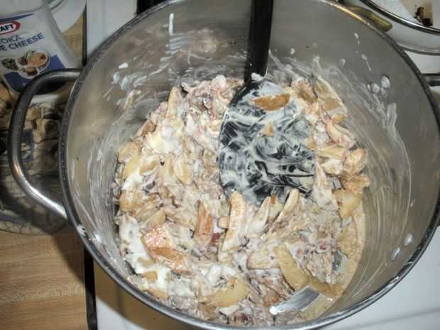 Poner tus papas aún calientes en un tazón grande o, si como yo no quieren sacar otro plato, un qt 5 olla que acaban de lavar después de agregar en la preparación de uno y se mezclan, para un par de minutos, revolviendo ocasionalmente hasta que es aborbed todos. Vierta aderezo 2 sobre las patatas, mezclando a medida que avanza hasta "parece derecho" ¿Qué es parece correcto? que depende de usted pero deben cubrirse muy bien las patatas. Guardar el resto vestidor 2 y si después de la ensalada se sienta en el frig un mientras que parece que lo necesita, agregue algunos más
