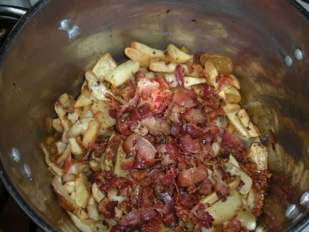 Bacon y patatas fritas ensalada para el acompañamiento del BBQ (6 / 7 paso)