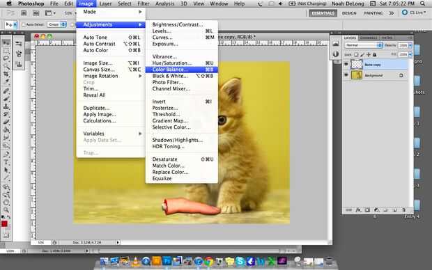 3. Utilice el equilibrio de color para hacer el dedo coinciden con los colores de la fotografía. Imagen > Ajustes > equilibrio de Color. También tuve que aplicar un desenfoque gaussiano leve al dedo porque la nitidez parecía antinatural. Filtro > Desenfoque > Desenfoque gaussiano