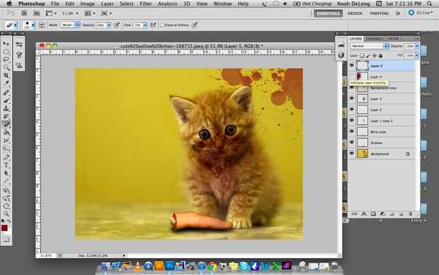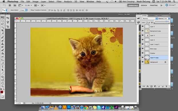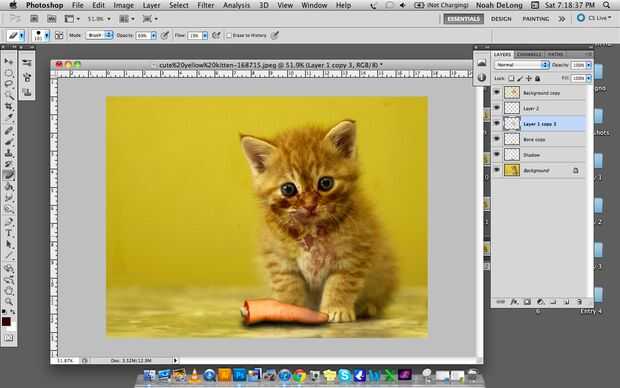 1. en primer lugar, vamos a añadir la sangre a la boca del gatito. Descargar un juego gratis de pinceles photoshop de "sangre" de internet. Usando un color rojo oscuro y una variedad de los cepillos downladed, pintan sangre en una nueva capa. Establecer el modo de fusión de esta capa a "Multiplicar" y jugar con la opacidad hasta que parece natural.