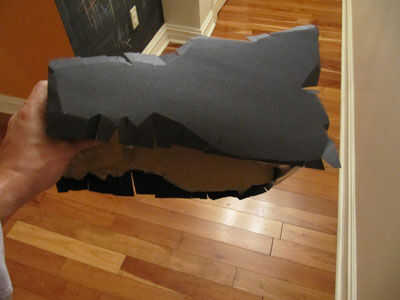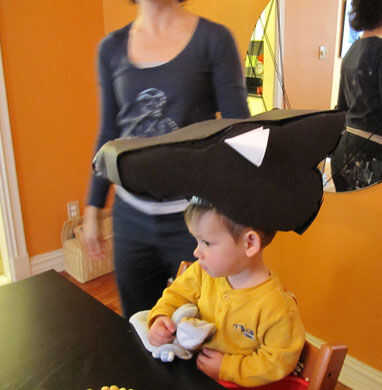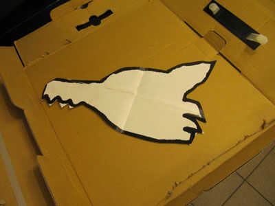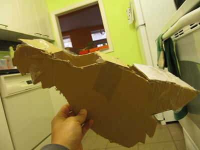 usando una gorra de béisbol, flexifirm entretela, edredón de bateo, paño grueso y suave, de piel y fieltro formó este casco traje para la producción de grupo juvenil de teatro de nuestra comunidad 2011 juicio del lobo feroz. El director quería un lob