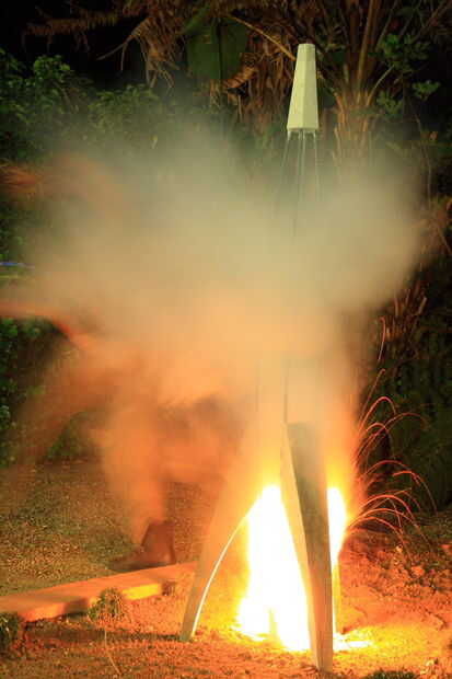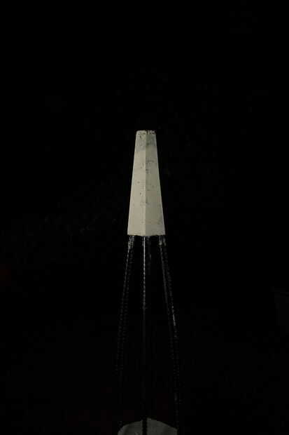 Cuando uno piensa en las palabras de hormigón y cemento, los pensamientos iniciales son de rigidez, resistencia, peso y ser conectado a tierra. Se trata de una suposición lógica debido a los muchos caminos, puentes y otros elementos 'voluminosos' del entorno construido. Quería crear una obra escultórica que plantea pregunta, inicia el pensamiento y estimula al observador. Opté por ello, a partir de la pregunta 'qué no viene a la mente cuando pensamos en concreto'... Una de las respuestas que vinieron a mi mente fue un cohete, ascendiendo a los cielos. Esto, junto con el desafío de tener que construir un cohete, me pareció una tarea estimulante y agradable. Como he trabajado cada vez más en el desarrollo del concepto, encontré un enlace interesante que es el siguiente: el concreto de la palabra viene de la palabra latina "concretus" significado compactos o condensados, que después de una inspección más uno puede enlazar a la tecnología avanzada, materiales compuestos y diseño utilitario utilizados en ingeniería aeronáutica. Esto se refiere a sí mismo con el diseño, desarrollo y ciencia de la nave espacial y recorrido de espacio. Aunque el cohete Badass pueden parecer muy alejado del material utilizado en su construcción, no es. Mi escultura incorpora dentro de la mezcla de hormigón, además de las migas de residuos de caucho de la industria automotriz. Este material fue utilizado como llenador, aumentando el grueso del cemento sin aumentar drásticamente el peso. Se trata de un material de desecho que tenga más uso en otras aplicaciones, e incorporar en esta escultura ilustra esto.