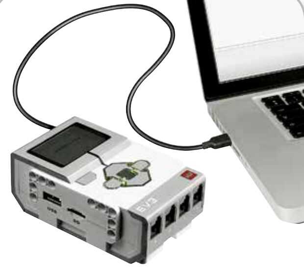 Utilizando el Cable USB, conecte el extremo Mini-USB puerto de PC del ladrillo EV3 (situado junto al puerto D). Conecte el extremo USB en su computadora.