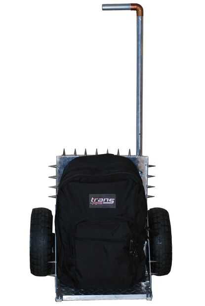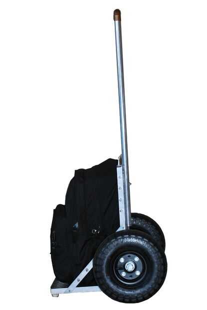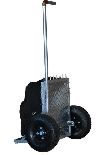 La mochila dispone de neumáticos, por lo que el viaje es mucho más silencioso que una mochila rodante normal. La mochila es extraíble de la estructura, está atornillado sobre el uso de tuercas de mariposa. El marco está rodeado por 1" púas de acero.