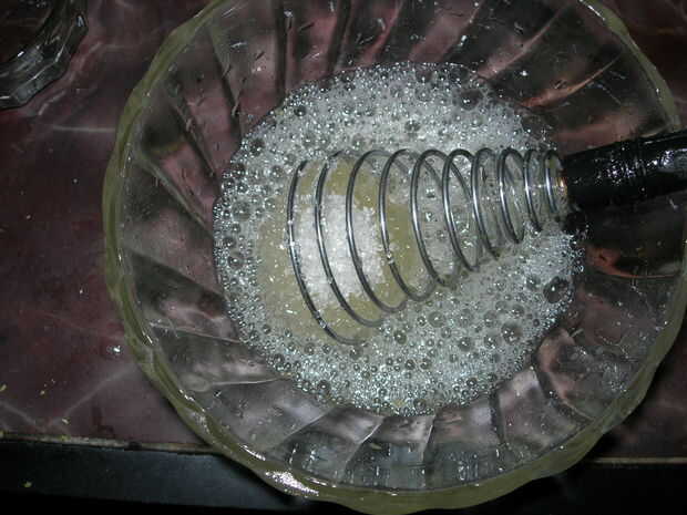 En otro recipiente batir las claras de huevo y añadirle azúcar y mezclar bien. Vierta esto en su tazón de servir o tazas. ahora vierte la mezcla de yema de huevo muy lentamente. y mantener este tazón de fuente en la nevera por 24 horas o hasta que establece.