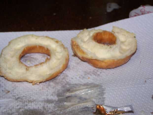 Cuando las tripas se presionan las paredes de la dona debe formar un labio.